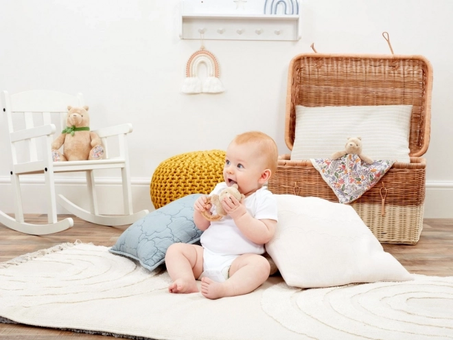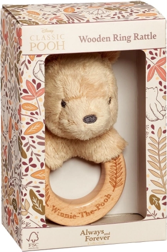 Diese bezaubernde Rassel mit dem Kopf von WINNIE PUUH auf einem glatten Holzring erfreut die Kleinsten mit einem sanften Klang und einem kuschelweichen Griffgefühl. Die ergonomische Form unterstützt den natürlichen Griff kleiner Kinderhände und die Entwicklung der Feinmotorik.