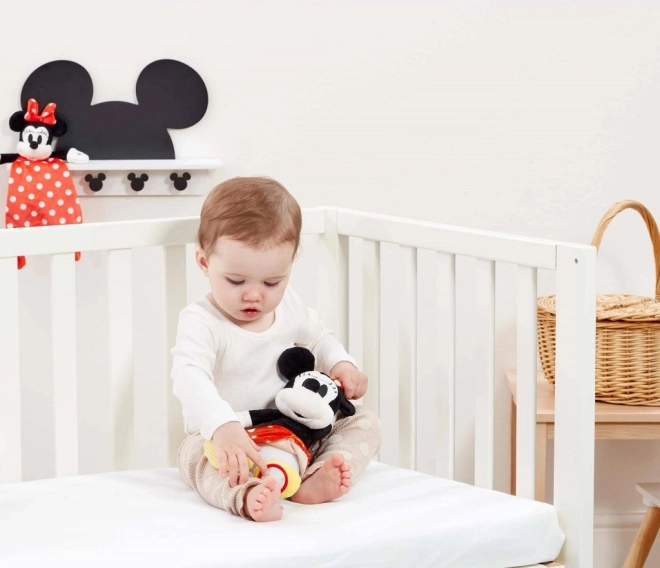 Die Plüsch-Maus MINNIE Activity bietet Babys ab der Geburt sanfte Anreize, die Welt zu entdecken. Das ikonische Design mit roter Schleife und Punkten erfreut kleine und große Fans von MICKEY & FRIENDS. Die kompakte Größe von 18 cm ist ideal fürs Bettchen, den Kinderwagen und für unterwegs.