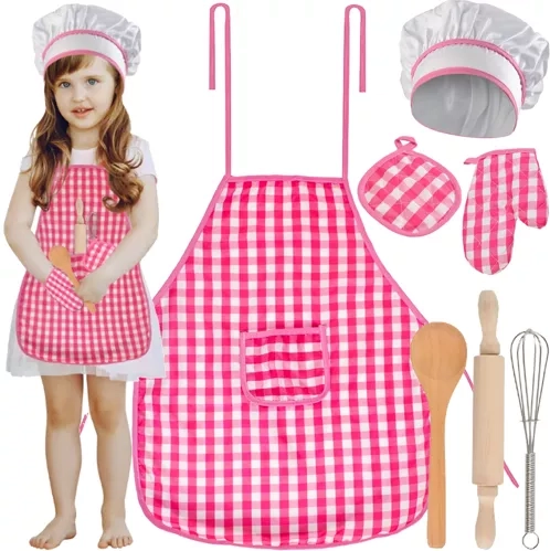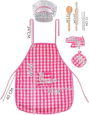 Das Kinderküchen-Set bietet eine wunderbare Möglichkeit, den kleinen Hobbyköchen das Spielen und Lernen durch Rollenspiele zu ermöglichen. Der komplette Look bestehend aus einer Schürze und einer Kochmütze eignet sich perfekt für Zuhause, Geburtstagsfeiern oder Kostümveranstaltungen.