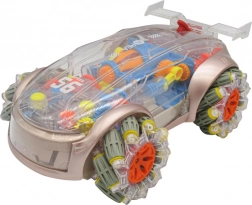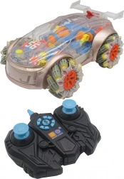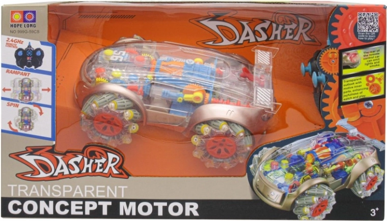 Die durchsichtige Karosserie zeigt das farbige Zahnradgetriebe und die Bewegung der inneren Teile – attraktiv und lehrreich zugleich.