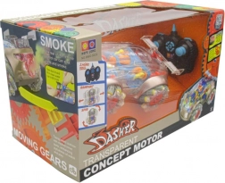 Entdecken Sie eine einzigartige Kombination aus Spaß und Technik. Die transparente Karosserie des RC-Autos ermöglicht es, die Arbeit der farbigen Zahnräder und der Mechanik in Echtzeit zu verfolgen. Den Raucheffekt erzeugen Sie ganz einfach – füllen Sie den Tank mit Wasser, drücken Sie die Taste und genießen Sie die visuelle Show während der Fahrt.