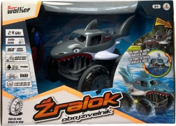 Entdecke Bewegungsfreiheit ohne Terrainlimits. Dieser amphibische RC-Hai ist für Spaß an Land und im Wasser konzipiert – von Schnee über Erde bis hin zu Gras. Dank einer flotten Höchstgeschwindigkeit von 7,5 km/h und präziser Steuerung genießt du dynamische Fahrten und sanfte Manöver.