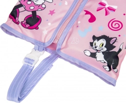 Für maximalen Komfort und Sicherheit ist sie mit einem vorderen Reißverschluss mit Abdeckleiste und einem verstellbaren Schrittgurt ausgestattet, der ein Hochrutschen der Weste verhindert. Die textile Oberfläche mit UPF 50+ fühlt sich angenehm an und ist gegen Ausbleichen beständig. Die Weste ist als Schwimm-Lernhilfe vorgesehen und muss stets unter Aufsicht von Erwachsenen verwendet werden.