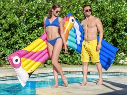 Fröhliche Farben und das Vogelmotiv sorgen für Sommerstimmung im Pool und begeistern Kinder wie Erwachsene.