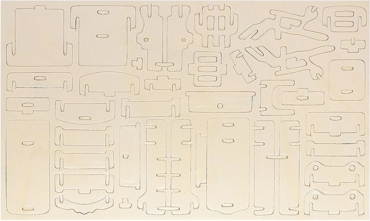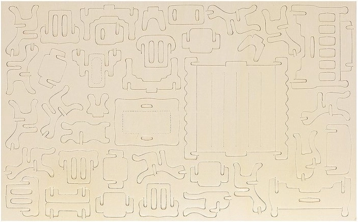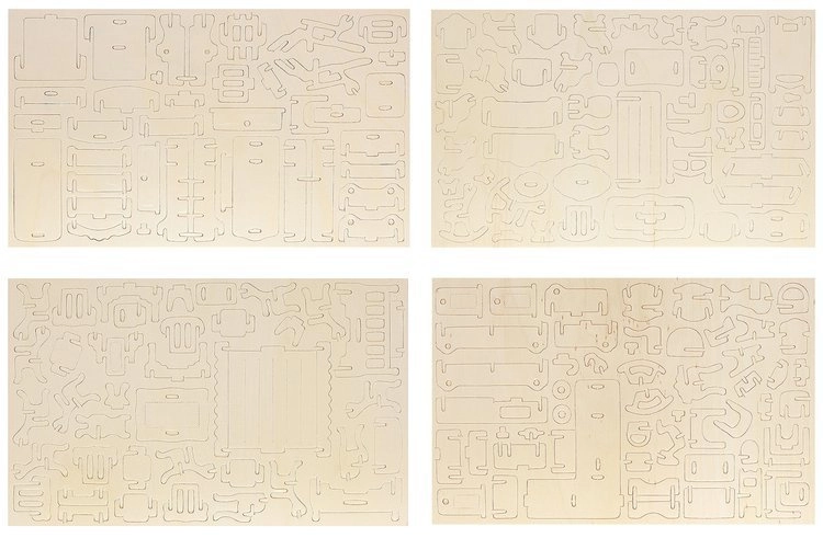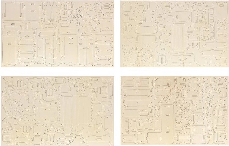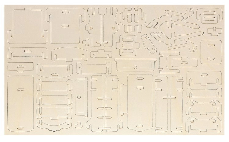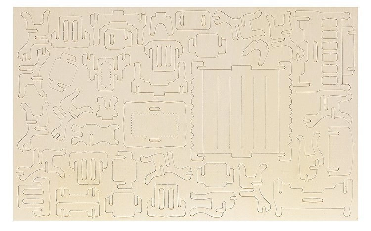 Die einzelnen Teile lassen sich leicht zu räumlichen Modellen zusammensetzen. Dank der naturbelassenen Oberfläche kann das Möbel ganz nach Fantasie bemalt und dekoriert werden.