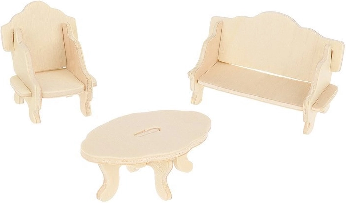 Das natürliche, unbehandelte Holz lässt sich leicht bemalen – ganz im eigenen Stil. Im Set enthalten sind 3 Schleifpapiere zum sauberen Entgraten nach dem Herauslösen aus den Platten. Die leichte Konstruktion ist ideal für unterwegs – die Möbel lassen sich auf- und wieder abbauen; alternativ können sie mit Holzleim dauerhaft verklebt werden.