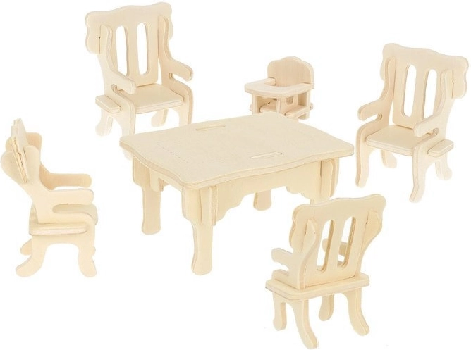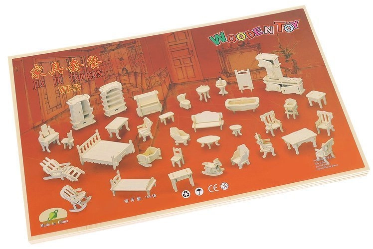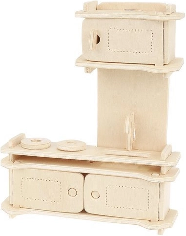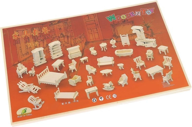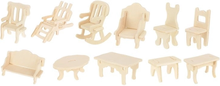 Dieses vielseitige Holz-Möbelset macht aus jedem Puppenhaus ein voll ausgestattetes Zuhause. Die Teile werden als 3D-Holzpuzzle zusammengesetzt – so trainieren Kinder Geschicklichkeit und Vorstellungskraft. Bewegliche Elemente (z. B. zu öffnende Schranktüren) machen das Spiel realistischer und unterhaltsamer.