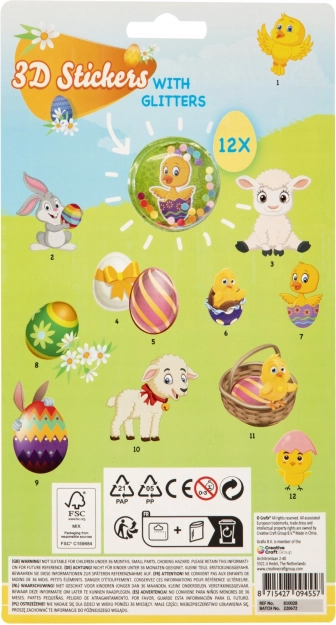 Schaffen Sie eine fröhliche Feststimmung mit Oster-3D-Aufklebern im Glitzereffekt. Ideal zum Dekorieren von Fenstern, Geschenken, Grußkarten, Heften oder DIY-Projekten. Dank des 3D-Effekts wirken die Motive noch ausdrucksstärker und verleihen Ihren Dekorationen Charme und Tiefe.