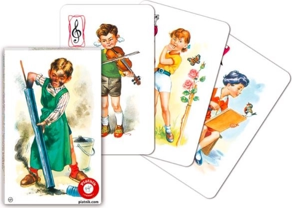 Ein klassisches Familienkartenspiel, das Kinder und Erwachsene kennen. Dank der einfachen Regeln und der kurzen Spieldauer eignet es sich perfekt für Reisen, Familiennachmittage oder als schnelle Unterhaltung unter Freunden. Die Spieler können verschiedene Spielvarianten wählen – das Austeilen des gesamten Kartensatzes mit Ziehen vom Nachbarn oder das Zurücklassen eines Teils des Stapels zum schrittweisen Ziehen.
