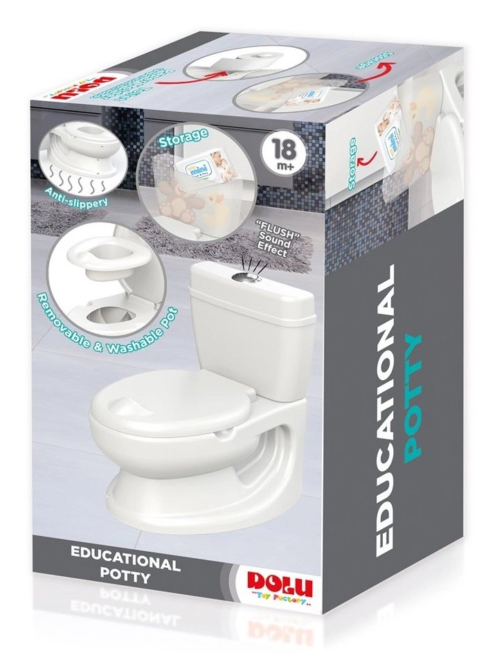 Dieses DOLU Kindertöpfchen ahmt eine echte Toilette detailgetreu nach, damit sich Ihr Kind beim Toilettentraining sicher und wohl fühlt. Die praktische Konstruktion ist leicht zu pflegen und bietet Stabilität sowie Komfort im täglichen Gebrauch.