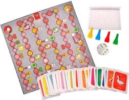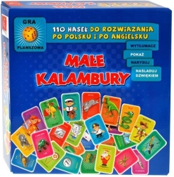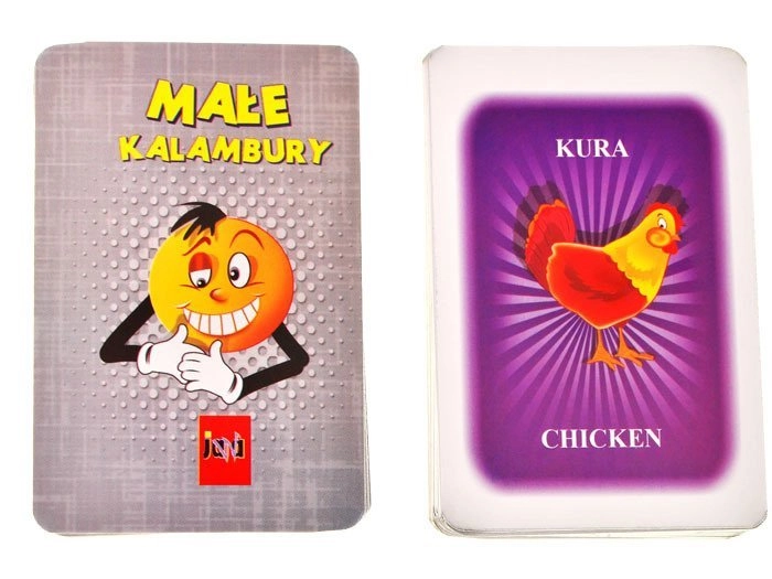 Das Set enthält alles Nötige für den sofortigen Spielstart: Spielbrett, 4 Spielfiguren, Würfel, 110 Karten mit polnischen und englischen Wörtern, Notizblock und Anleitung.