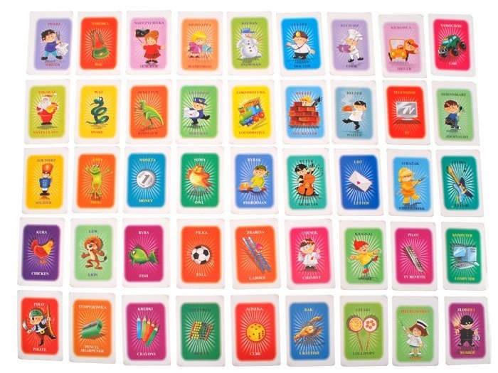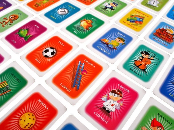 Dank der zweisprachigen Karten dient das Spiel auch als Lernhilfe, unterstützt das Erlernen der englischen Sprache und erweitert den Wortschatz.