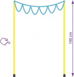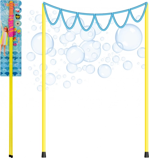 Dieses Set für große Seifenblasen ist ideal für Kinder und Erwachsene, die den Zauber von Seifenblasen lieben. Tauchen Sie einfach die Schnur in die spezielle Lösung und erstellen Sie mit sanften Bewegungen riesige Blasen. Die Länge der Schnur beträgt 300 cm, die Griffe ungefähr 100 cm. Der Behälter für die Lösung ist nicht enthalten. Bunte Blasen und Tunnel werden jeden kleinen Entdecker begeistern. Freude und ein lachender Spaß sind garantiert!