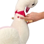 Das Spielzeug benötigt zwei AA-Batterien. Das Batteriefach ist unter dem Bäuchlein verborgen und mit einer Schraube gesichert.