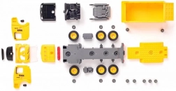 Das Set enthält Kunststoffteile des Fahrzeugs und Räder zur eigenen Montage. Kinder bauen das Fahrzeug zusammen und können sofort zur Baustelle starten.
