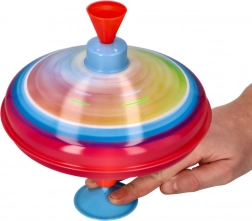 Klassischer Spielspaß im modernen Design: Der Metallkreisel mit Standfuß und LED-Lichtern wird durch Druck auf die obere Stange in Rotation versetzt, erzeugt ein angenehmes summendes Geräusch und kippt dank stabilem Sockel nicht um. Ideal zur Förderung der Motorik und visuellen Stimulation für Kinder ab 1 Jahr.