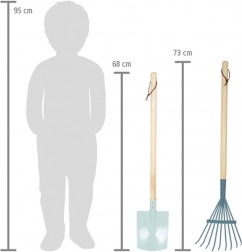 Jedes Teil besteht aus einer Kombination aus Holz und Metall für eine lange Lebensdauer. Schlaufen an den Griffen ermöglichen ein einfaches Aufhängen und übersichtliche Aufbewahrung. Einsetzbar auf dem Beet und Rasen ebenso wie im Sandkasten oder am Strand.