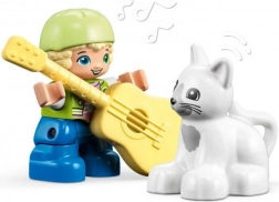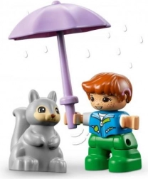 Das Set ist voller Zubehör für fantasievolle Szenen – vom Picknick unter dem Regenschirm über Gartenarbeit mit Schubkarre und Kürbis bis zur Fahrt auf dem Skateboard mit Helm. Fünf Figuren und drei Tiere (Vogel, Katze, Eichhörnchen) inspirieren zu Rollenspielen und gemeinsamer Eltern-Kind-Zeit.