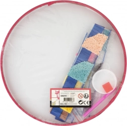 Entdecken Sie ein entspannendes, kreatives Hobby mit dem Grafix-Kit für Diamantmalerei auf einer runden Leinwand, 30 cm. Mit Hilfe eines Stifts setzen Sie farbige Steinchen auf die vorgedruckten Stellen und gestalten eine leuchtende türkisfarbene Mandala in einem Holzrahmen. Das Set enthält alles Nötige – ideal für Entspannung, Geduldstraining und Dekoration Ihrer Räume.
