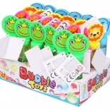 Jede Seifenblasenflasche ist mit einem von vier Tierchen verziert – Löwe, Frosch, Delfin oder Katze. Perfekt als kleines Geschenk, Belohnung oder Party-Accessoire für Kinder.