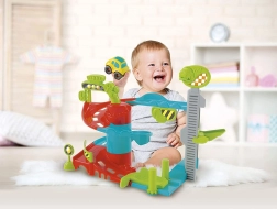 Diese farbenfrohe CLEMENTONI BABY Spaß-Garage bietet Kindern endlose Action und Entdeckungen. Die Bahn ist so gestaltet, dass das Auto hinuntergleitet, lustige Purzelbäume macht und mithilfe des manuellen Aufzugs wieder zum Start zurückkehrt – so endet der Spaß nie.