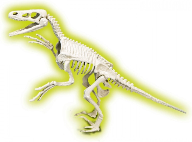 - Das Velociraptor-Skelett leuchtet im Dunkeln!