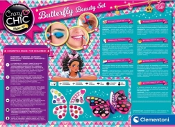 Entdecken Sie die kreative Welt des Schminkens mit dem Schmetterlings-Kosmetikset Crazy Chic. Kinder können sicher Augen- und Lippen-Make-up ausprobieren, temporäre Haarfärbungen testen und eine einfache Maniküre durchführen. Das kompakte Design mit Spiegel hält alles übersichtlich zusammen und ist ideal für unterwegs.