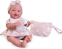 Die Puppe MIA bietet Kindern ein authentisches Erlebnis der Babypflege. Dank des hochwertigen weichgemachten Vinyls wirkt sie sehr natürlich, hat realistisch geformte Gliedmaßen und Körper und kann blinzeln und nach dem Trinken aus der Flasche auch Pipi machen. Teil des Sets ist eine elegante Geschenkverpackung, die die Puppe zu einem wunderschönen Geschenk macht.