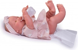 Nach dem Trinken aus der nachfüllbaren Flasche macht die Puppe Pipi in die Windel und wirkt dank der blinzelnden Augen sehr lebensecht. Perfekt für realistische Pflegespiele.