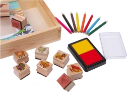 Dieses Set enthält eine breite Palette von Stempeln, die verschiedene tierische Bewohner des Bauernhofs darstellen. Kinder können jedes Motiv mit den 8 mitgelieferten Buntstiften ausmalen, was unendliche Kombinationen von Farbkombinationen ermöglicht. Die Holzkiste bietet eine ideale Aufbewahrungslösung für alles, was Kinder zum Basteln benötigen, und macht dieses Set ideal für Reisen.