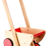 Die praktische 2-in-1-Funktion ermöglicht die Nutzung des Wagens auch als Transportwagen – ideal zum Transport von Bausteinen, Kuscheltieren oder anderen Schätzen. Die robuste Holzkonstruktion mit Metallelementen und Gummirädern ist für tägliche Kinderabenteuer und eine lange Lebensdauer ausgelegt.