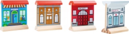 • Bäume, verschiedene Holzgebäude und bunte Lokomotiven und Waggons zur vollständigen Ergänzung der Welt der Kinder.