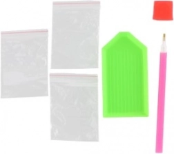 In der Packung finden Sie alles, was Sie benötigen: Leinwand mit vorgedrucktem Motiv und Klebeschicht, Applikationsstift, Wachs, Schale und ein Set farbiger Steinchen. Ziehen Sie die Schutzfolie von der Leinwand schrittweise ab und setzen Sie die Steinchen mit dem wachsbefüllten Stift exakt auf die markierten Stellen. Das fertige Bild lässt sich einfach einrahmen und ausstellen (Rahmen ist nicht im Lieferumfang enthalten).