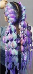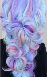 Der pastellige Farbverlauf verleiht der Frisur einen modernen Look und betont Zöpfe und Flechtfrisuren eindrucksvoll.