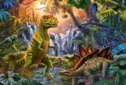 Jedes Puzzle bietet eine andere Szene aus der prähistorischen Welt, verschiedene Arten von Dinosauriern sind in detailliert ausgearbeiteten Illustrationen abgebildet.
