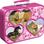 Robustes Metallgehäuse mit Pferdedesign, ideal zur Aufbewahrung und zum Transport der Puzzles.