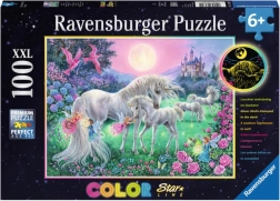Entdecken Sie die Magie der Serie COLOR STAR LINE: ein neonfarbenes, fluoreszierendes Puzzle mit Einhörnern bei Vollmond, das nach dem Aufladen im Licht im Dunkeln erstrahlt. Dank der XXL-Teile lässt sich das Puzzle auch von jüngeren Kindern bequem legen und fördert Konzentration, logisches Denken und die Feinmotorik.